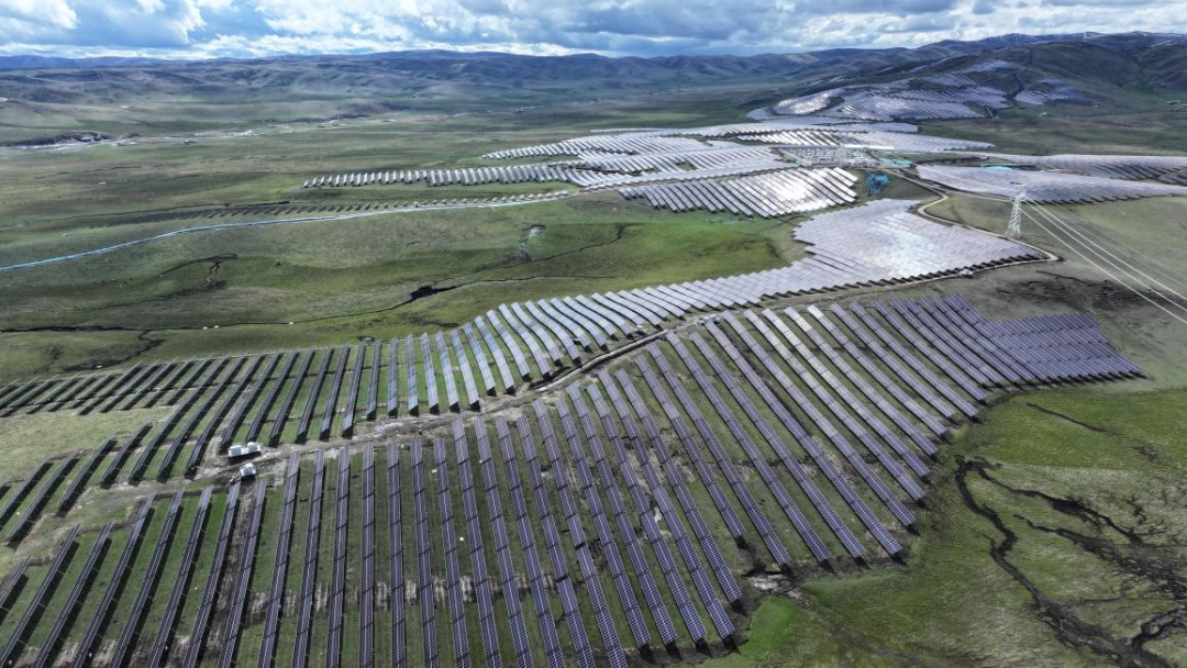 在四川红原,由中建二局承建的红原雅克光伏电站于今年五月实现全容量并网发电,以“光伏+畜牧业”模式,实现“板上发电、板下养殖”,不仅年发电量达4.5亿千瓦时,更为高原牧民开辟可持续增收路径。