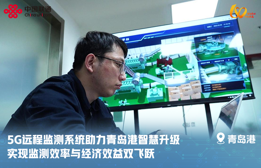 在青岛港,中国联通轮驳船远程监测系统等5G智慧应用,实现对船岸设备和能耗的实时智能管控,提升检测效率并节省大量成本;同时打造5G皮带智能监管项目,可实现无人值守智慧化码头。